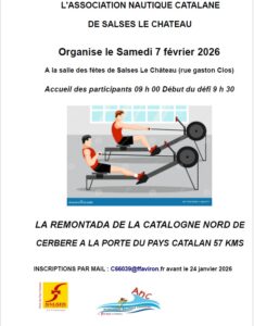 57 km de rame indoor par équipes sur ergomètre INSCRIPTIONS PAR MAIL : C66039@ffaviron.fr avant le 24 janvier 2026